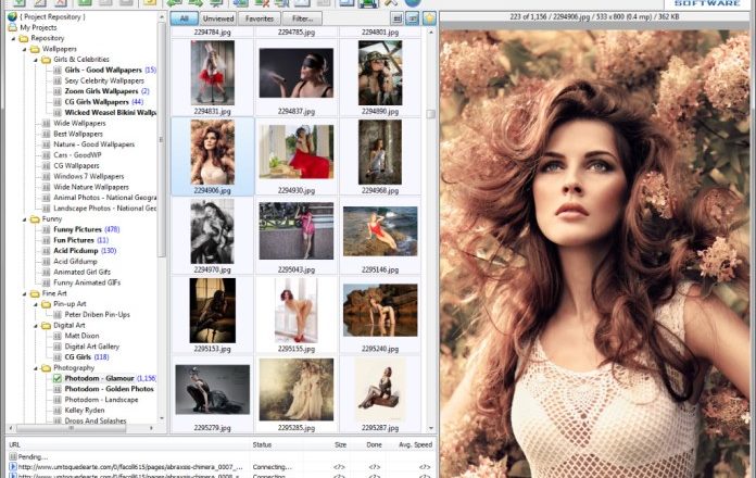 - Интелигентно филтриране: Можете да зададете критерии за качество и размер, което е изключително полезно при сваляне на тапети за десктоп или висококачествени снимки.